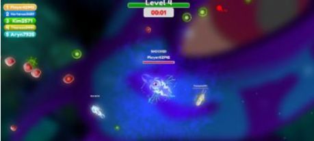 3、吞噬体积以你相同或比你小的生物细胞,会让你的体型壮大并升级,逐渐成为最大的孢子。