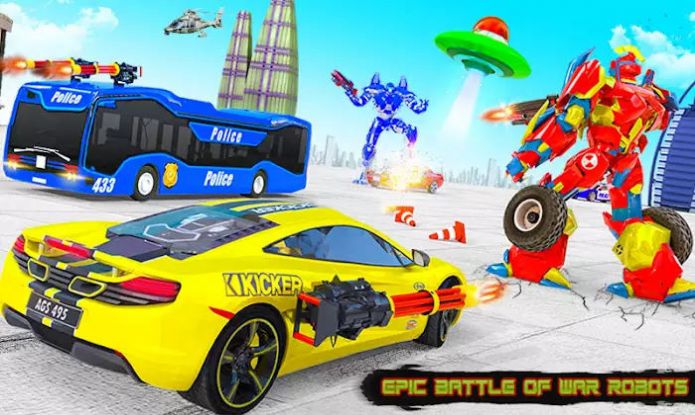 飞行巴士机器人汽车战争是一款趣味十足好玩的变形机器人动作手游。游戏中的超多玩法给用户带来不一样的机器人格斗尝试。游戏中用户需要操控飞行巴士完成各种各样的任务挑战。游戏中的剧情非常丰富,玩家可以跟随剧情了解这个精彩的机器人世界。