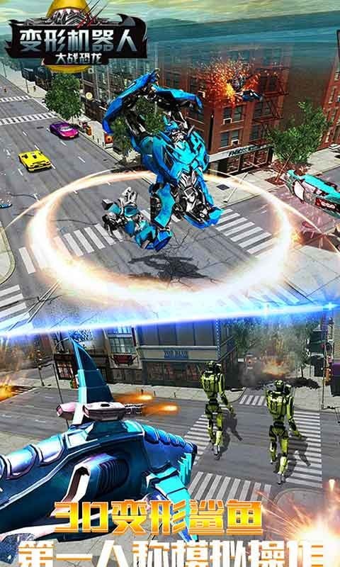 3、机器人变身为不同造型的恐龙,你也可以随时变换人形,在模拟的真实城市中自由行走。