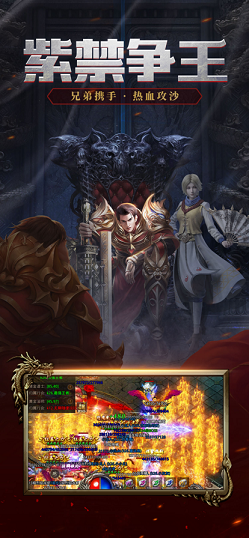2、经典怀旧风格,王者称霸,疯狂刷boss,随机捡装备,获取大量物资,皇城争霸。