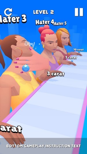 2、障碍物会阻碍钻戒前进的道路,快速挑战你的最高钻戒跑酷分数;