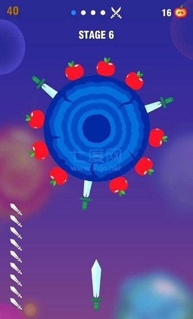 1.操作非常简单,只需点击屏幕即可拍摄飞刀,但突破的难度并不低。