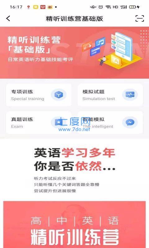 2、进一步提升本身在高考听力测验中的成就,打造了练习营形式,为用户设置了不同练习服务专区;
