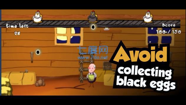 里边有黑色的鸡也有白色的鸡,它们会没有规律的下蛋,你要做的就是在它们下蛋的时候接住那些蛋
