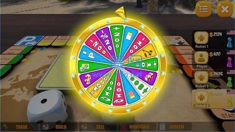 交易土地,建造房屋,赢得拍卖,以及惊险刺激大转盘,在俄罗斯轮盘里爽一把,开心才是最重要的。