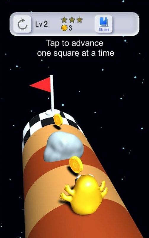 1、点击屏幕外星人就会向前移动,但是只移动一格,想要继续前进就必须再次点击屏幕。