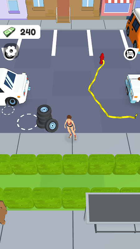 2、手游场景是一个汽车服务店,你要控制女孩用水管洗车,洗完后会获得相应的报酬,