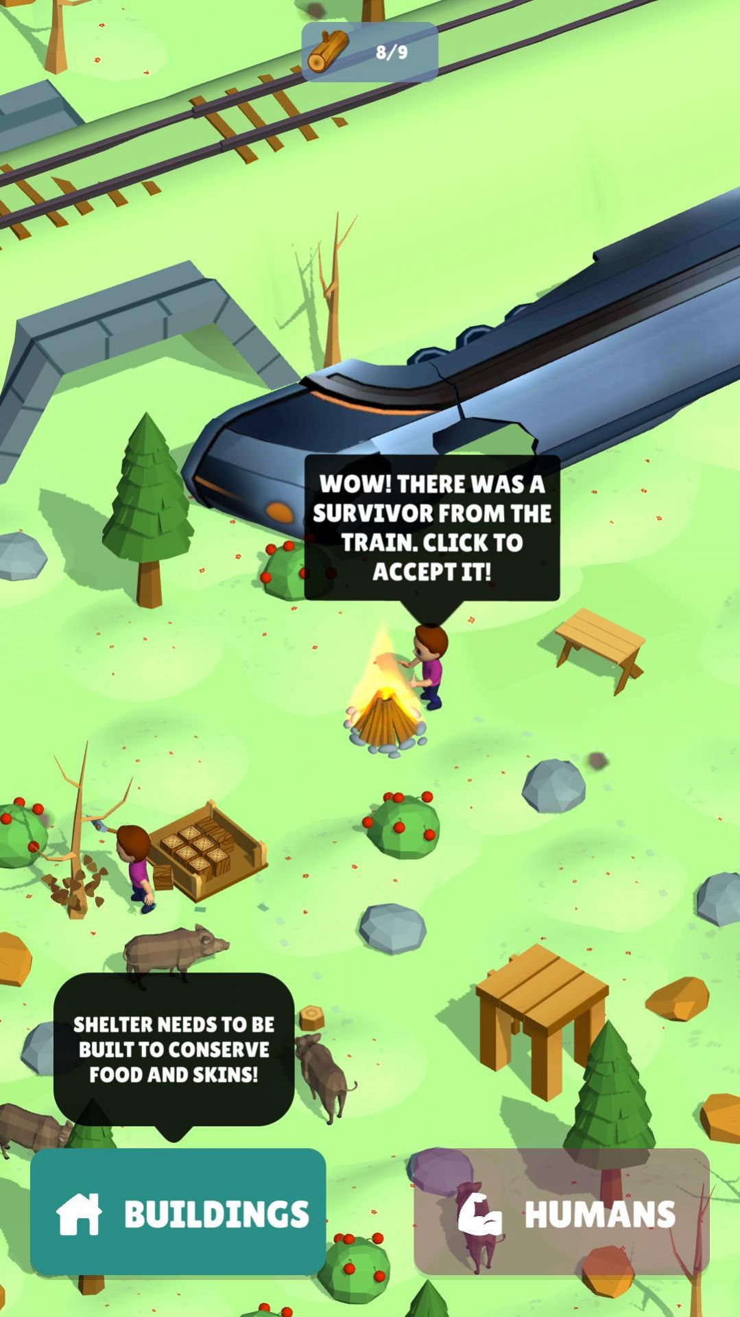 野生森林闲置生存手游作为一款玩法非常超多的森林生存题材的手游,在该款中用户需要进入到一个野外的森林中去,并且通过自己的操作让自己的角色完成自己的生存冒险,生存下去所需要的元素是很多的,在游戏里玩家要注意多收集一些资源。