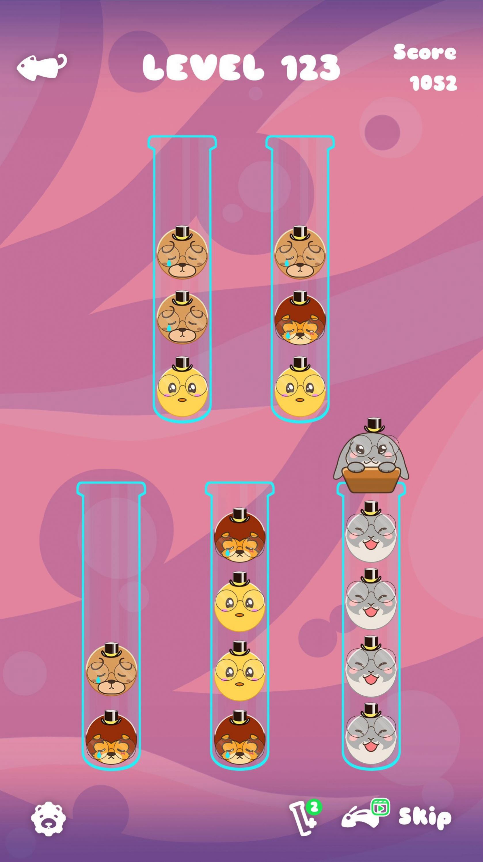 可爱的难题(Puzzle Cutie)独特角色的烧脑闯关手游,主要是以排序的模式进行闯关,所有试管里面都有很多不停地动物形象,在游戏里玩家需要根据正常的顺序将相同的动物形象进行排列,然后获取更多金币奖励就能过关了。手游难度并不大,玩起来也很有意思,赶紧来试试吧!