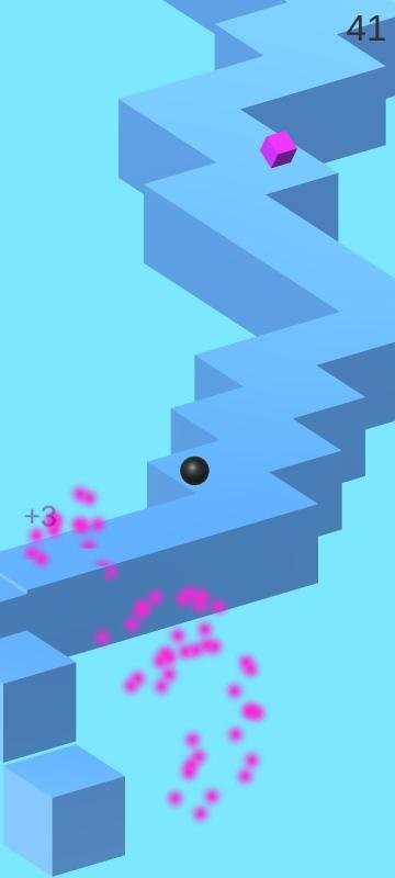 3、用户将控制球在道路上连续滚动,撞墙后会反弹回来。您还可以点击以将球向前移动并收集钻石。