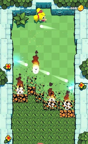 2、用户可以通过滑动屏幕发射小球并在场上引爆炸弹以摧毁更多草;