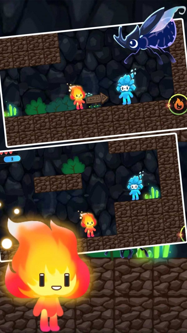 红蓝冰火双人游戏作为一款经典的双人冒险闯关手游,红蓝冰火双人游戏用户们需要具备良好的闯关默契,红蓝冰火双人游戏相互配合来完成精彩的冒险闯关。