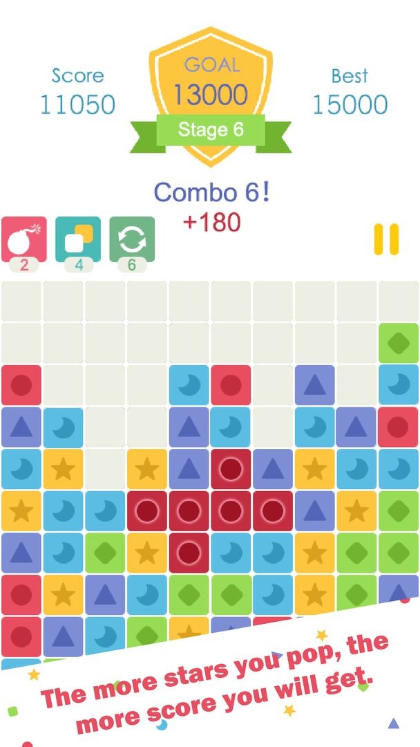 简单易学,充满智慧思维,将不同颜色的积木组合起来获得更高的分数。