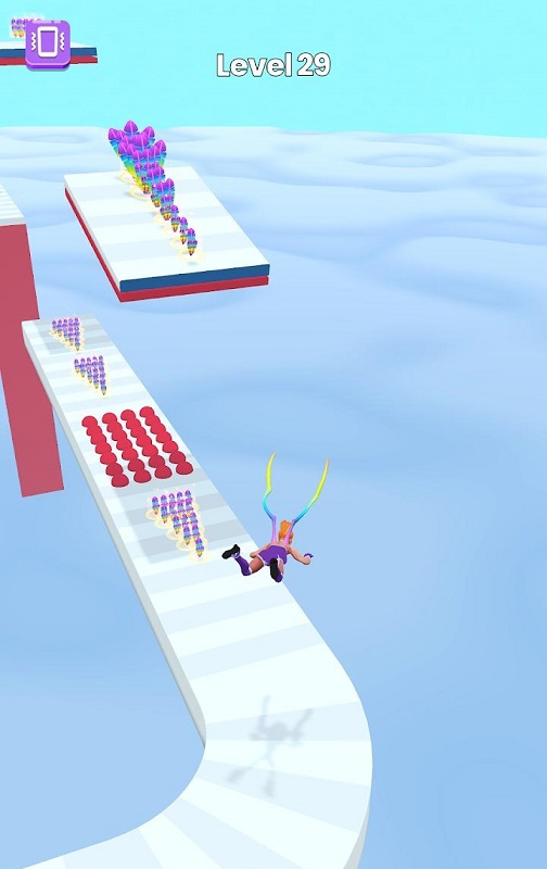 手游的玩法十分有趣,在游戏里玩家需要控制自己的角色收集很多漂亮的彩色翅膀,这样才能保证在遇到一些障碍可以飞跃过去,或是在两个断掉的平台之间飞行,收集的翅膀越多越有利。