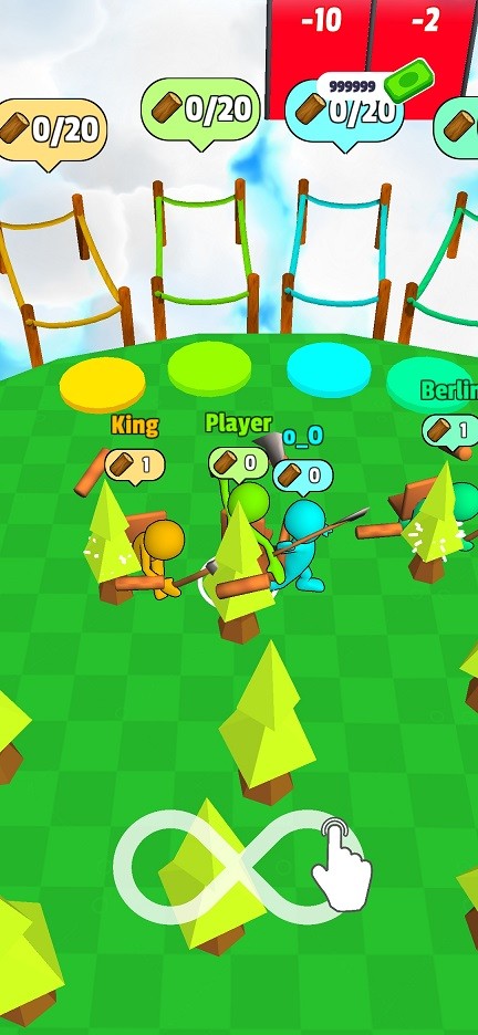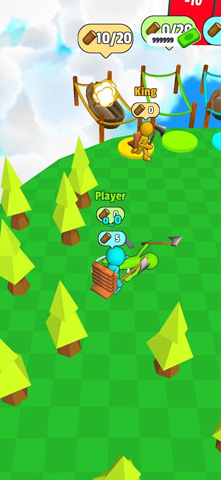 操作你的角色在游戏里灵活移动,用手中的斧头多砍柴。