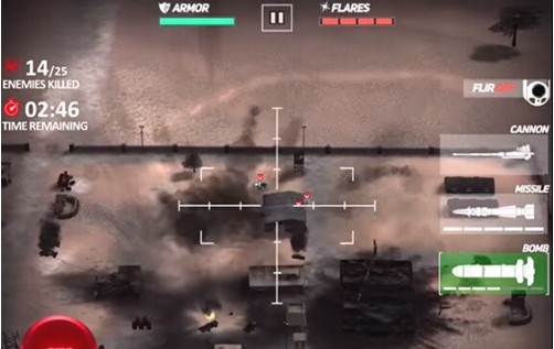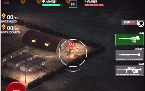 与50种地道的攻击单位交锋,其中包括武装直升机、狙击手、装甲车、坦克以及攻击直升机。运用多种视觉模式,如FLIR和夜视模式,以适应多变的地形、沙尘暴和雾气环境。