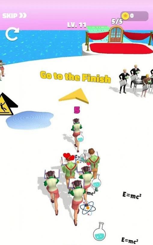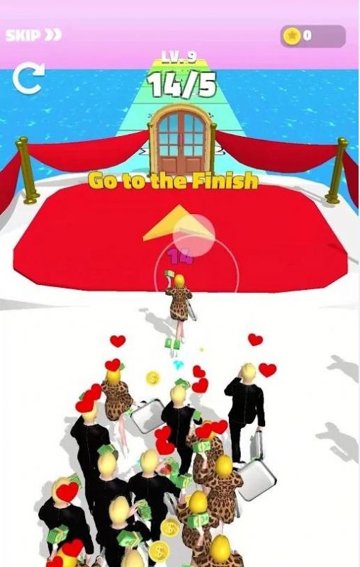 2、然后随意滑动屏幕控制角色移动,同时召集自己的爱慕者,直到终点;