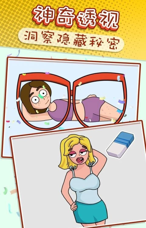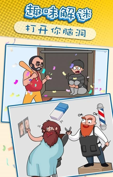 是一个有趣的益智手游。我们这里要脑洞大开,正常思维肯定过不去。一定要扭曲你的思想,你的思想越神奇,玩起来就越有趣。超级超多的关卡设定,巨多的玩法等你来尝试挑战,各种道具帮你通关。