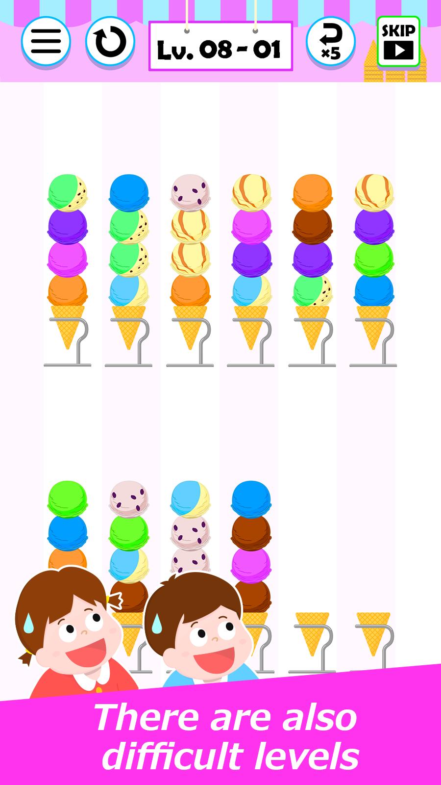 是一个益智烧脑的分类型的手游,类似于倒水的手游。它对混乱的内容进行了分类,分类后整齐的画面会让人感到愉悦。这次我们对冰淇淋球进行分类,包括有球分类谜题、水分类谜题等。