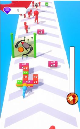 在倍增射击该游戏中,在游戏里玩家将会操控手游中的小人进行跑酷闯关,在闯关的过程中小人需要拿起手中武器进行射击,因为前方有超多的敌人正在阻挡你前进。你也可以通过收集赛道上的方块来增加自己队伍的人数,人数越多,我们的攻击力也就越强,也就更容易的闯过关卡。