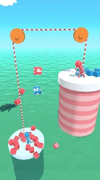 在天秤座之战该游戏中,在游戏里玩家将会在一个平台上,平台的下面是一片海洋,我们需要用手中的方块扔进对手的平台,这样他就会因为太重导致平台下沉,我们的平台从而就会升高,远离海洋。最后让我们的对手沉下去掉进海里,我们就获得手游的胜利,手游玩法十分有趣。