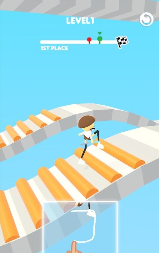 在重复赛跑者该游戏中,在游戏里玩家将会操控着手游中的角色进行跑酷,跑酷的赛道上十分的崎岖,有着各色各样的障碍,并且道路也是多种多样的类型,我们需要根据手游中的要求,画出相对应的形状,这样才能快速前进,我们需要超越手游中的对手,第一个到达手游的终点。