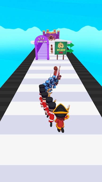 军队奔跑3D(Army Run 3D)手游作为一个非常好玩的冒险闯关类型的手游,游戏中用户在游戏中需要选择各种带着武器的门,所有门的效果都是不一样的,游戏中用户只有拥有强大的战斗力才能安全进入城堡,一起来试一试吧!增加自己的军队数量也可以增加战斗力哦!感兴趣的小伙伴赶紧来下载试一试吧!
