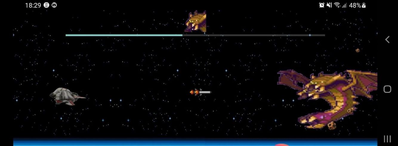 3、当遇到怪兽后会自动射击,此时不仅要躲避陨石还要躲避怪兽发射的子弹。