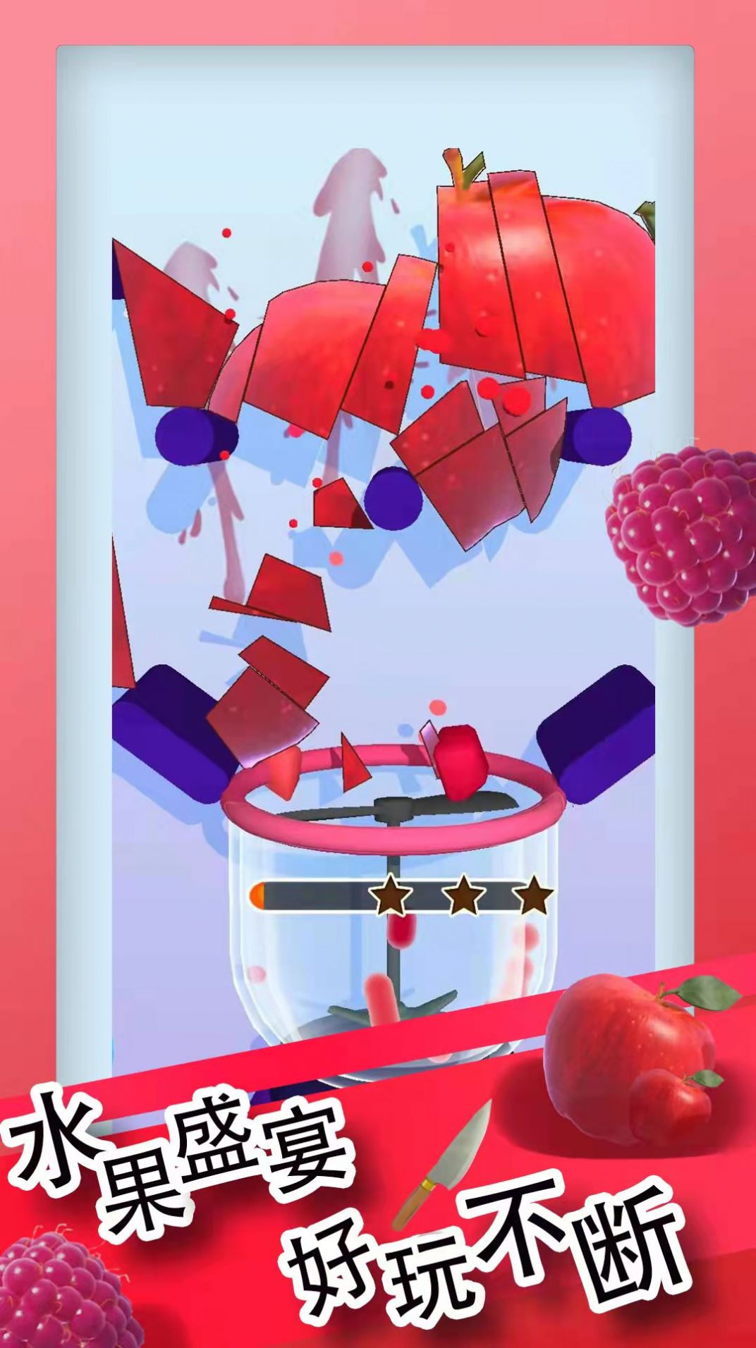 3、用一把小刀,对水果进行疯狂的切割,这些切好的水果会被装在杯子中。
