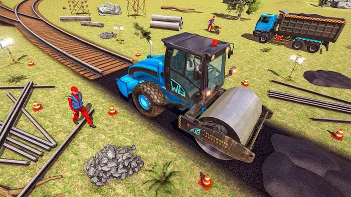 在道路建设火车游戏中用货物叉车装载所有材料,并将材料运送到火车游戏中所需的地方。引入供应链管理系统,玩家需要合理调度混凝土搅拌车、钢轨运输专列等物流设备。