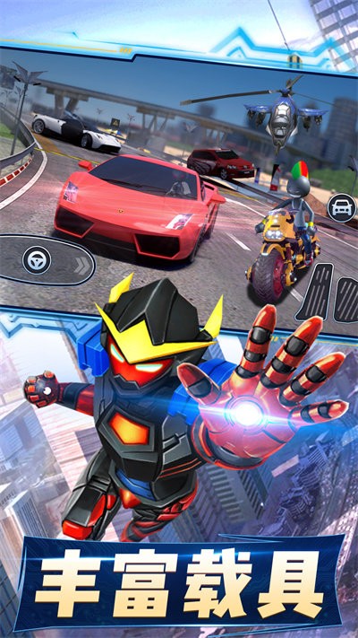 火柴人猎车英雄是超级英雄题材的冒险手游,拥有超多的剧情尝试,在游戏里玩家可以使用各种不同的载具巡逻城市,还能够收集超多的武器装备,你必须作为火柴钢铁人与坏人作战。