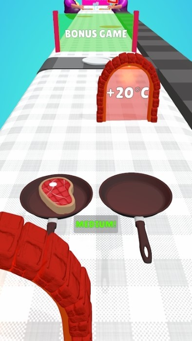 平底锅冲刺是一个冒险闯关的玩法,向终点冲刺,并且要选择合适的温度通道,玩法为顾客准备美味的饭菜!给平底锅里的煎饼、披萨、鸡蛋等食物加热。