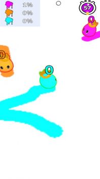 与其他玩家同时在线对战,以颜色区域的大小为比赛目标,展现你的绘画天赋,争夺胜利。实时排行榜让你随时了解自己的排名情况。