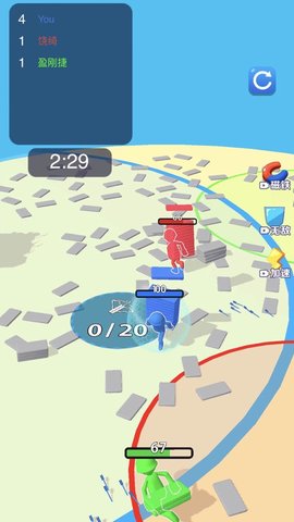 游戏最大的亮点在于其创新的多人对战模式,玩家可以与来自世界各地的玩家同场竞技,比拼谁能在最短时间内收集最多的砖块并建造出最坚固的城堡。游戏在传统搬砖玩法的基础上,加入了塔防元素,玩家不仅要建造高塔,还要设置防御工事来抵御敌人的进攻。游戏中还提供了多种强力武器道具,帮助玩家应对各种突发状况。特别值得一提的是,游戏还加入了救援玩法,玩家在建造防御工事的同时,还要注意营救被困的幸存者。