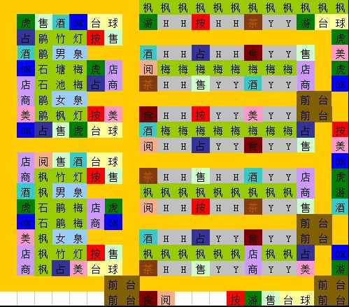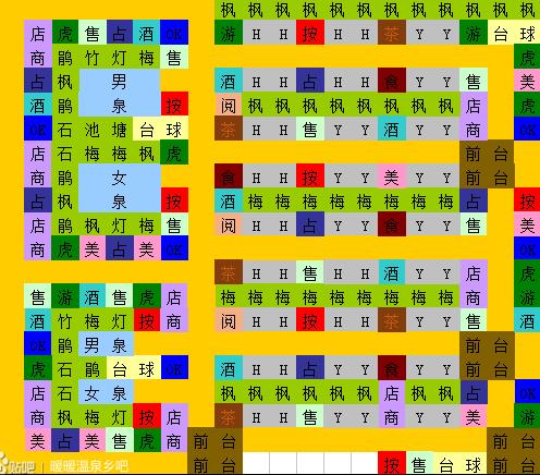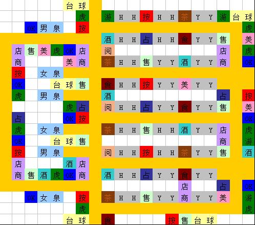 一周目的小温泉布局,空白的格子随意放置,客房不足就增加客房,也可以随意添加一些商店。