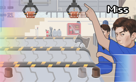 2、上下为点按操作,中间是“无敌风火轮”需要长按操作,有Miss、Good和Perfect评分,Miss会减同步率。