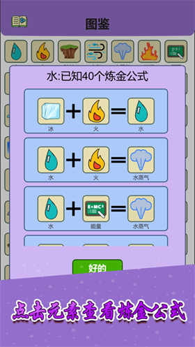 3.丰富的搭配方式,所有的合成都有对应的逻辑,尝试不同的元素反应方式,探索新的组合配方。