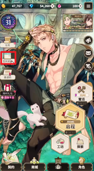 1、玩家们启动游戏之后,将能够点击屏幕左边的【签到奖励】进入到签到界面。