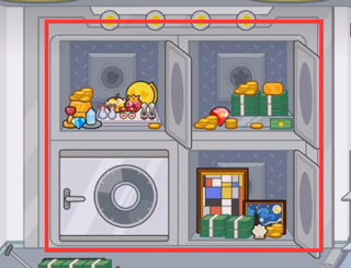 登上银行的二楼,开启保险柜。依据所给图形,依次找出钻石、红心、星星和贝壳,并将它们按序放入保险柜中,如此一来,保险柜便会开启,里面存放着诸多宝物。
