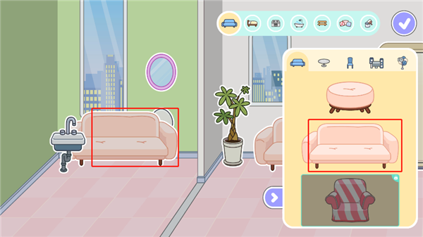 4、这里面为用户提供了极为丰富的家居用品,像沙发、桌子、洗手台、床、浴缸之类,玩家能够自行挑选自己心仪的家居。