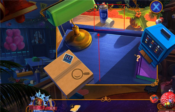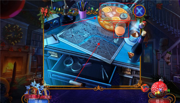 1、打开耶鲁节传说谁陷害了圣诞老人游戏,进入游戏主界面,我们对图中的桌子进行检查,