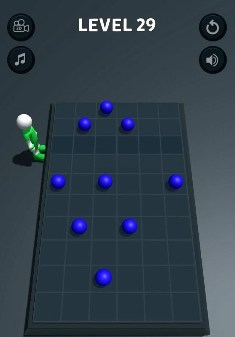 3、若3个球能完美合为一个球,且该球所处位置在小人面前的格子范围内,即可闯关成功。
