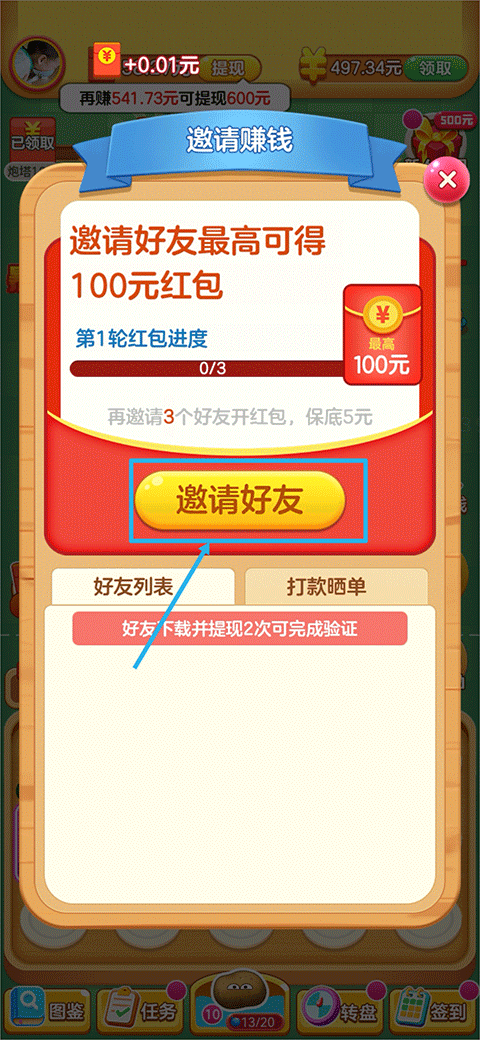 3、分享后好友通过点击邀请链接下载游戏,并输入邀请码即可