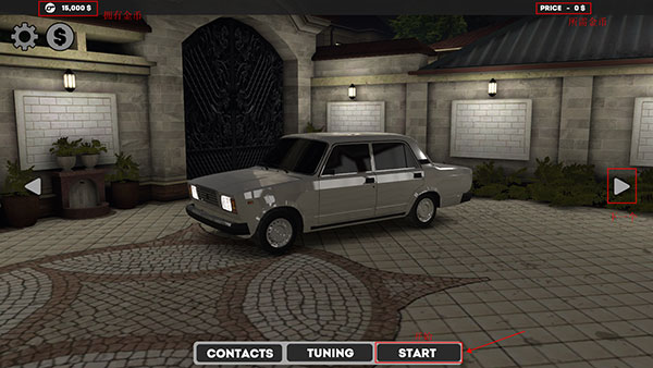 界面中间放置着即将驾驶的车辆,左上角显示玩家所拥有的金币数量,右上角则标明了车辆所需的金币数额。