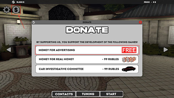 2、若玩家拥有的金币不足以驾驶所需车辆,可点击左上角的“金币”图标,再点击第一个“free”,就能免费获取5000金币。