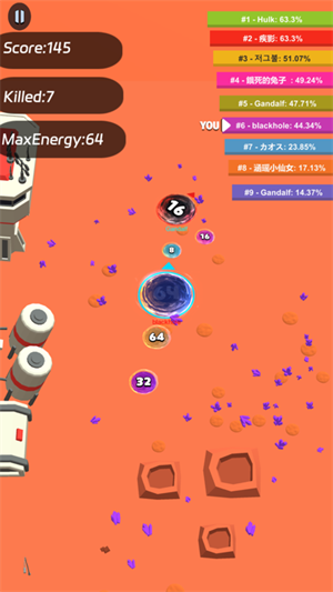 到了决赛圈就是黑洞与黑洞的较量了,如果你自认为自己的黑洞面积小就躲起来猥琐发育,一定会有比你更小的黑洞吃掉之后就去和其它人PK吧。