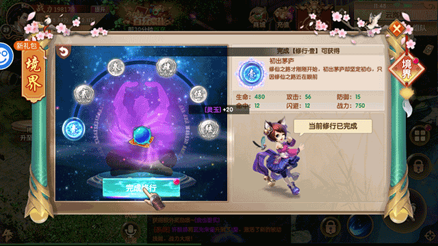 2、在这里选择并点击“完成修行”的选项;