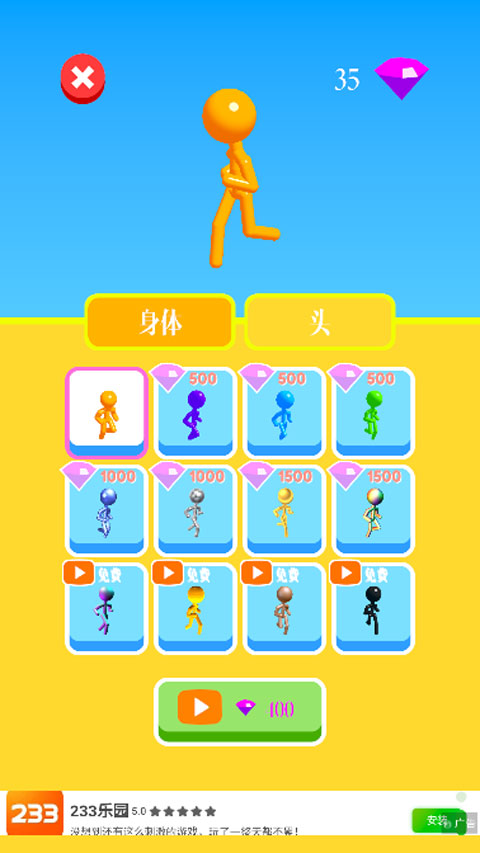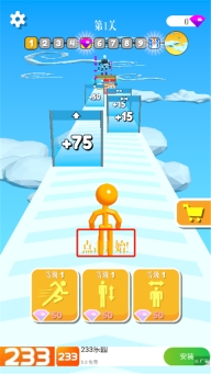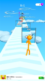 2、属于标准的超休闲火柴人动作跑酷类型,在关卡里,火柴人不仅能够实现身高的增长,还可以提升自身的腰围。