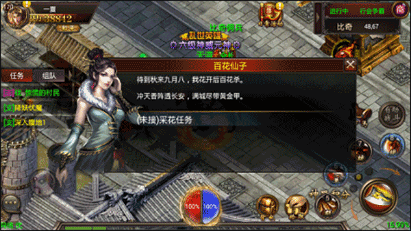 a、玩家可以通过点击日常活动的百花争艳“立即前往”按钮后,角色将自动寻路到相应的任务人物。
