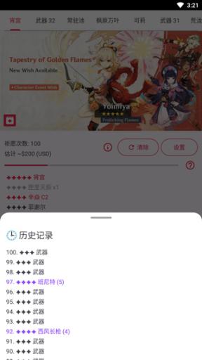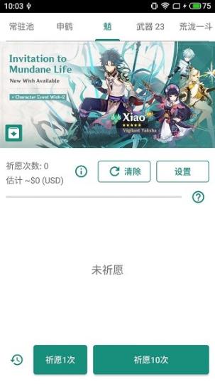 1. 打开原神抽卡模拟器中文版,游戏内设有各个版本限定的角色up池、武器up池以及常驻池。 2. 游戏对原神的单抽和十连这两种抽卡方式进行了模拟。